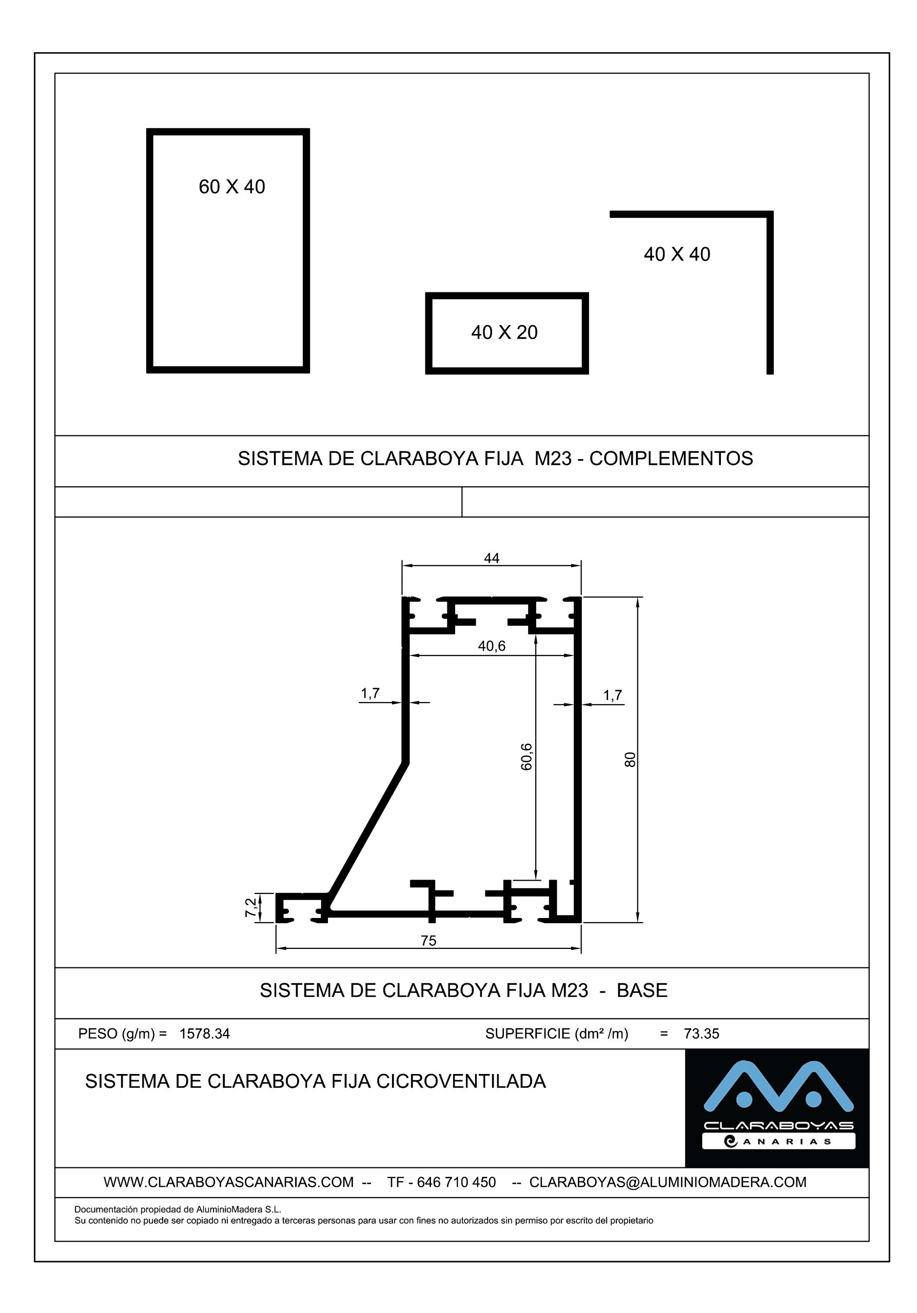 Perfilería combinada para la fabricación de ventanas de claraboyas fija micro ventilada.